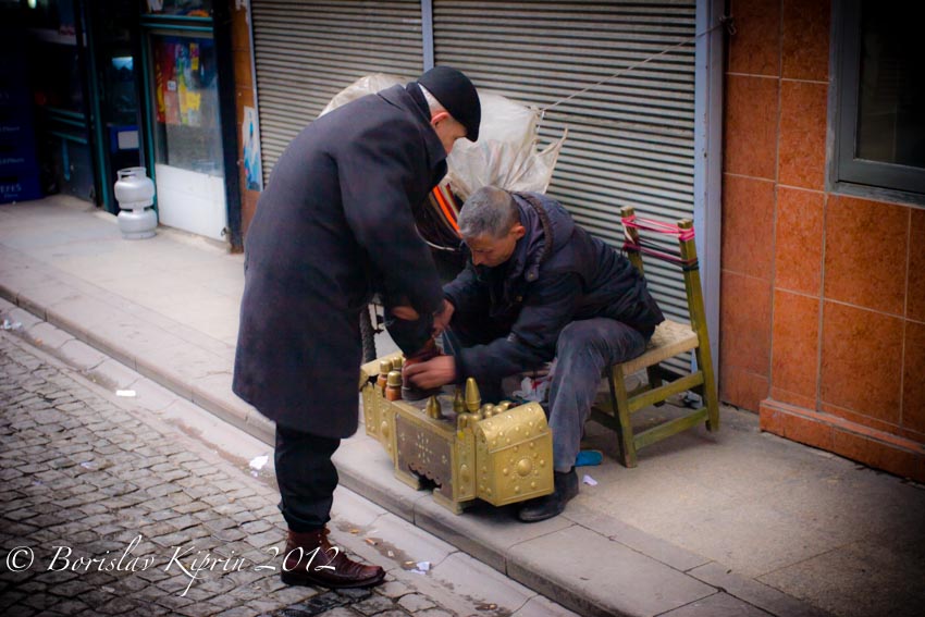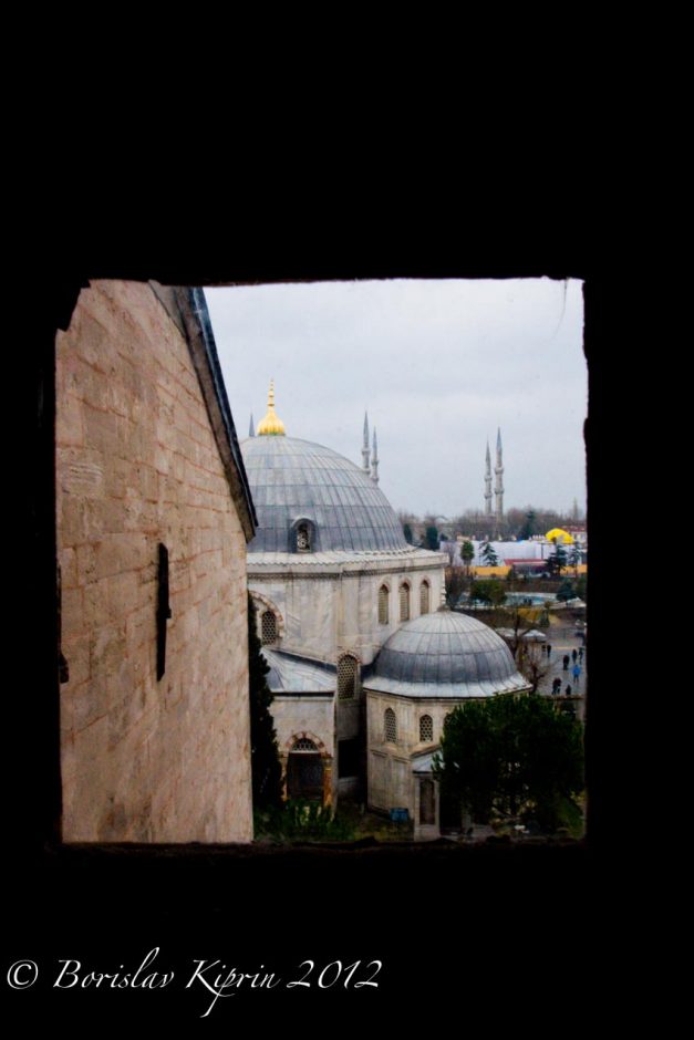 I have never shown you the view from the inner side of Topkapı Saray‘s west gate uncovering the Blue Mosque… Or the group of friends strolling down an alley at the Spice Market while laughing at each others’ jokes. Or the many-many mosques that reign on every hill of this enigmatic city. Or the true marvel of Istanbul, which is taking a walk in the small and not frequently visited by tourist streets on the west bank of the Golden Horn. The old houses and their ambiance that seems totally disconnected from the hectic pace the world moves by on the main streets of the old Turkish capital. Or the shoeshiner and his customer who were exchanging pleasantries in an incomprehensible language to me while the former was doing what he does for a living. Or the geometric perspective I have witnessed in probably the greatest temple of God I have ever set my foot in – Hagia Sophia.