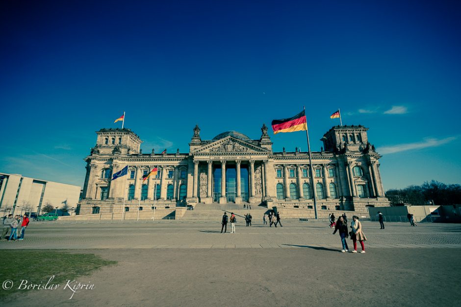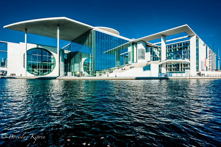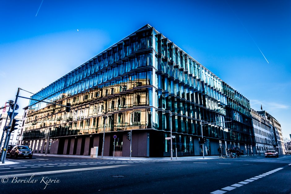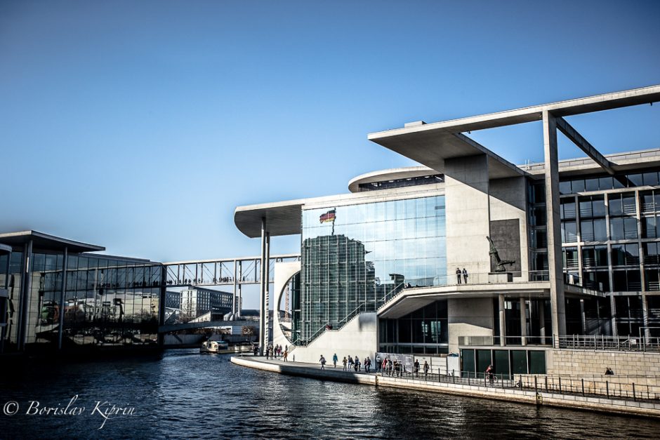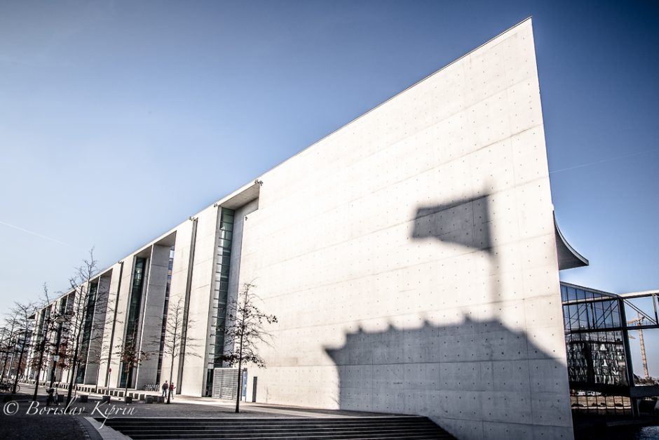 Happily, the photographic trip around Berlin’s highlights took a different turn as soon as we left the memorial and moved on to the Reichstag, the library of the parliament “Marie-Elisabeth-Lüders-Haus” (on the banks of river Spree, the other spots near the Unter den Linden, Checkpoint Charlie and the piece of the Wall. I think that the first stop we made influenced quite a lot the photos Florian and I were taking in the following hours. Both of us were in a pensive mode and it came not as a surprise that we focused mainly on pure mathematics – the geometry of shapes, architecture, and reflections of lights. Ergo the high contrast of the post-shooting editing and the more abstract vision I have applied in my pictures. The light that day was great, at moments a bit too strong, but still…